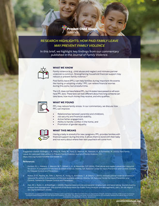 - Pace, G. T., Lee, J. T., Schneider, W. & Klika, J. B. (2022). Supporting fathers to prevent child maltreatment: How paid family leave and child care subsidies are part of a public health approach. International Journal of Child Maltreatment. https://doi.org/10.1007/s42448-022-00124-x